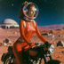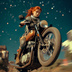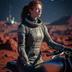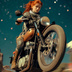 クラシックなバイクに跨り、未知の惑星を疾走する女性ライダーを捉えたシリーズ。ヴィンテージなメカニックの質感と、透き通るような宇宙の夜空、そして彼女たちの強い眼差しが、見る者に「自由」と「冒険心」を呼び覚まします。